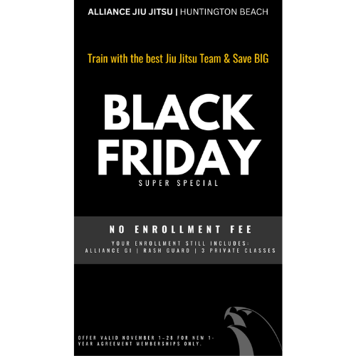 This Black Friday, Alliance Jiu Jitsu Huntington Beach is offering an unbeatable deal to help you kickstart your Jiu Jitsu journey!
